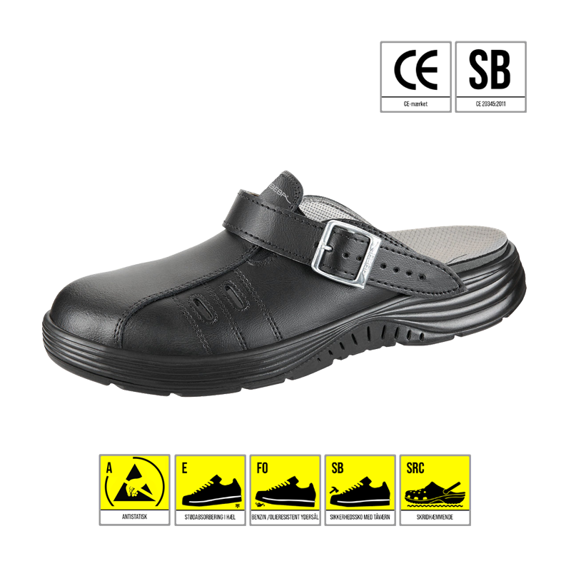 – CE godkendt i henhold til EN ISO 20345:2012, A, E, FO, SRC.