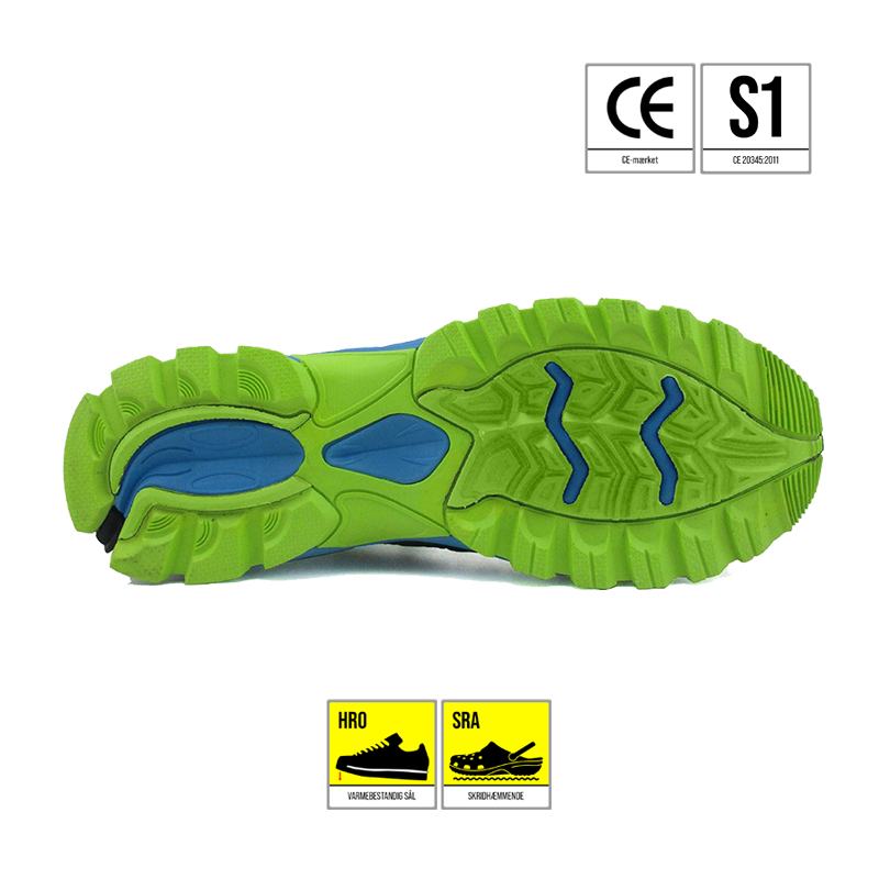 CE EN ISO 20345 sikkerhedssko med tåkappe, HRO Varmebestandig ydersål, SRA