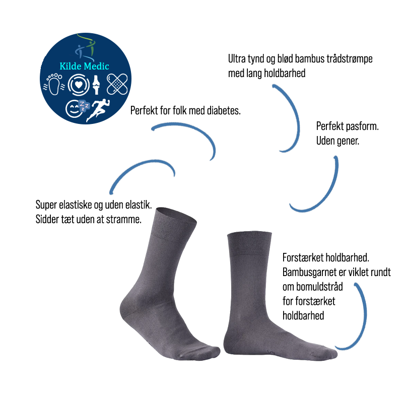 Behagelig diabetesstrømpe der giver dine fødder et godt miljø uden gener fra sømme og elastikker.