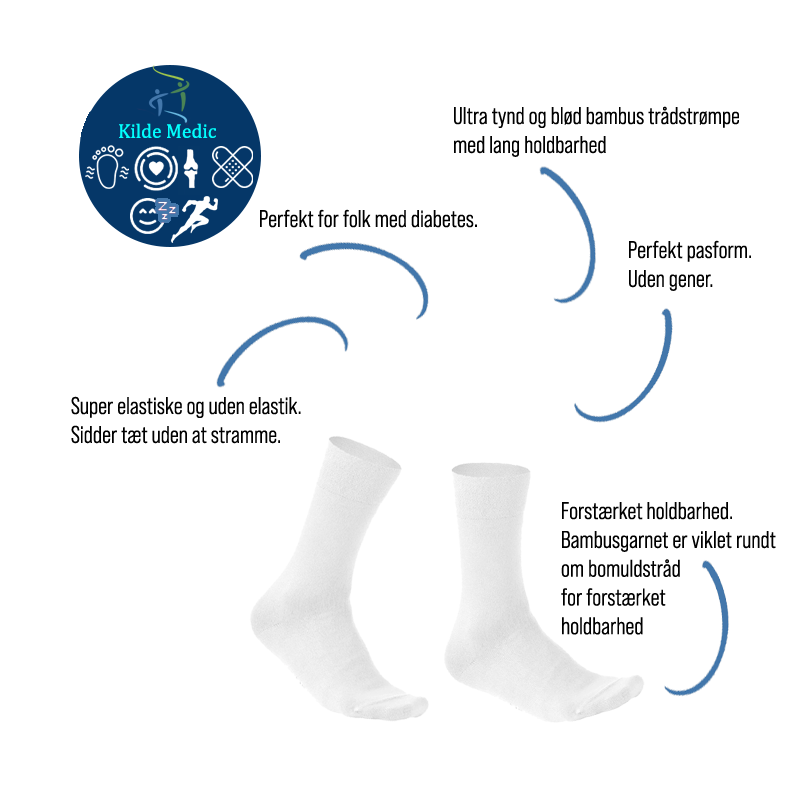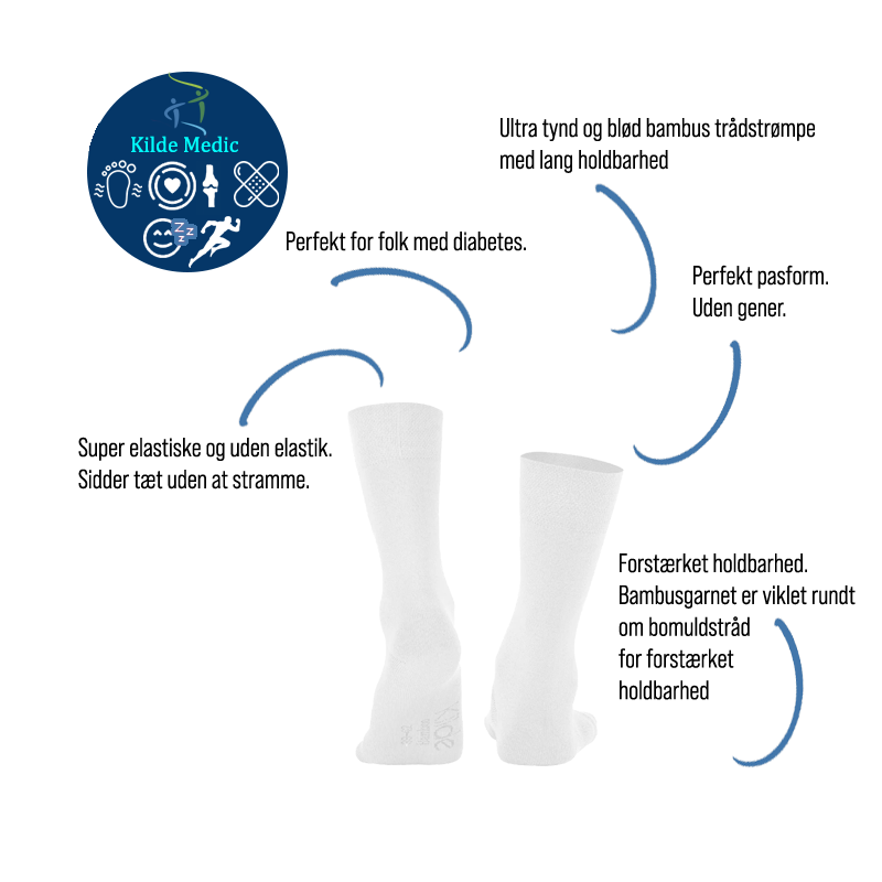 Behagelig diabetesstrømpe der giver dine fødder et godt miljø uden gener fra sømme og elastikker.