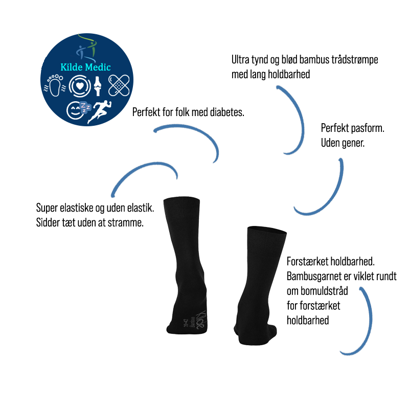 Behagelig diabetesstrømpe der giver dine fødder et godt miljø uden gener fra sømme og elastikker.