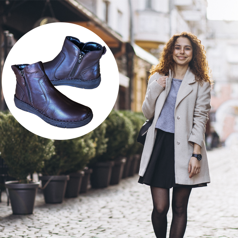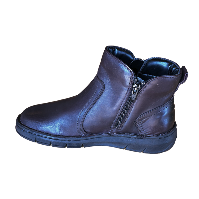 Smart og komfortabel støvlet i blødt mørk bordeaux skind.