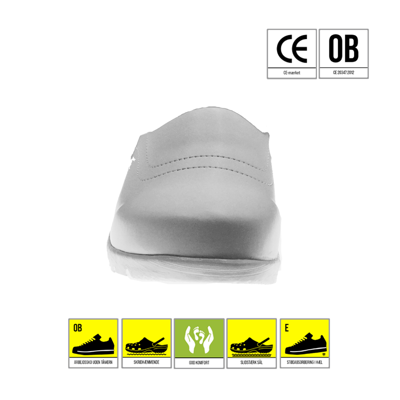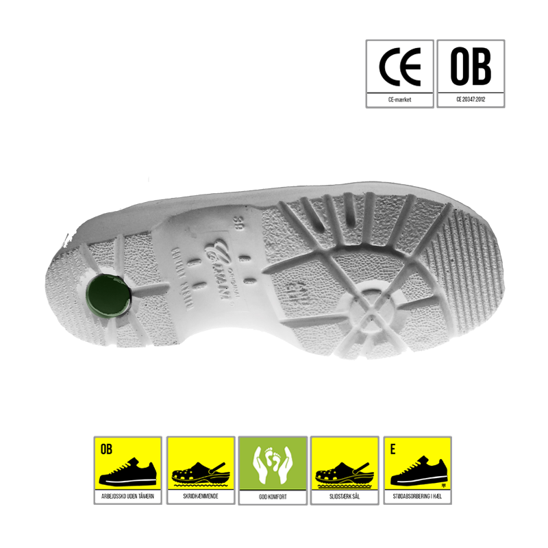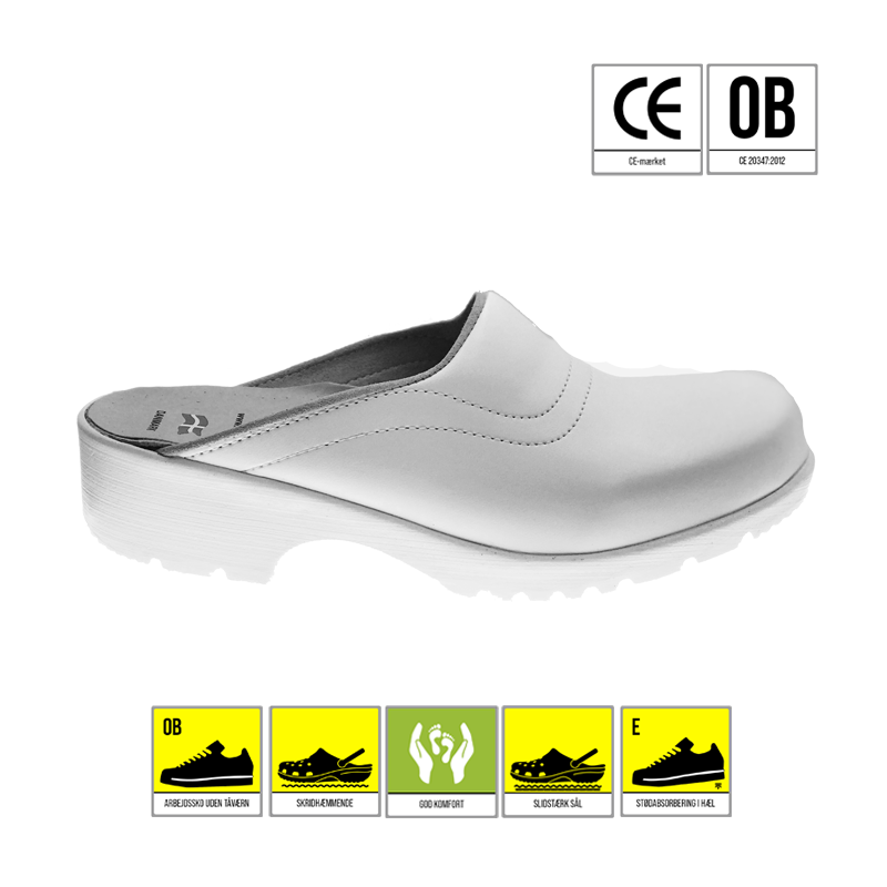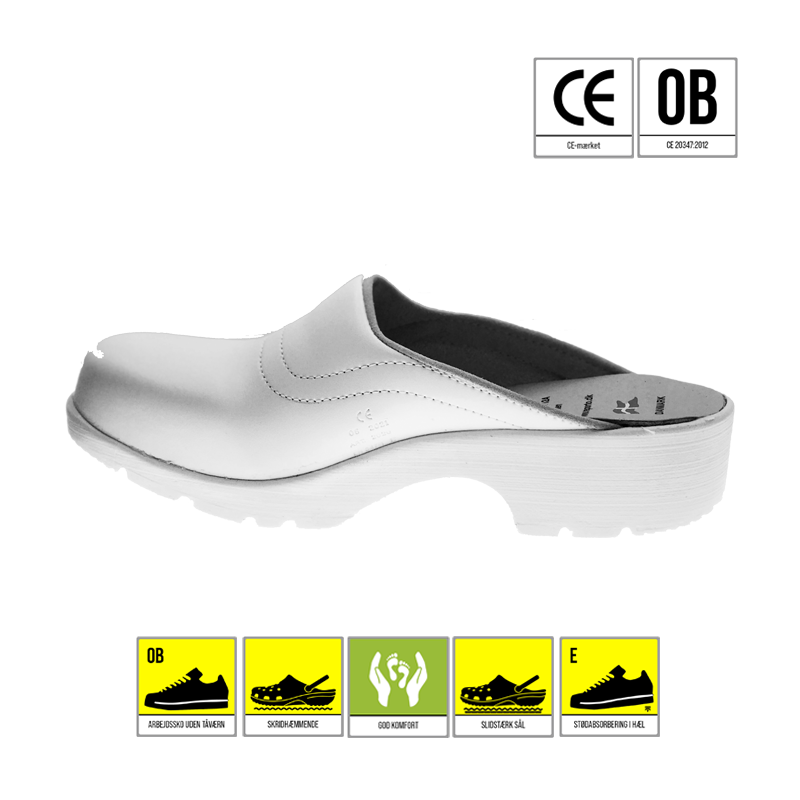 Komfortabel træsko med skridhæmmende ydersål til arbejde på skiftende overflader.