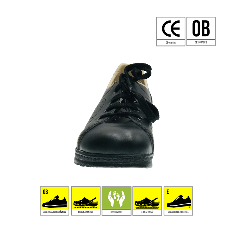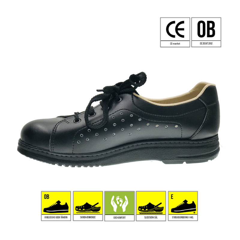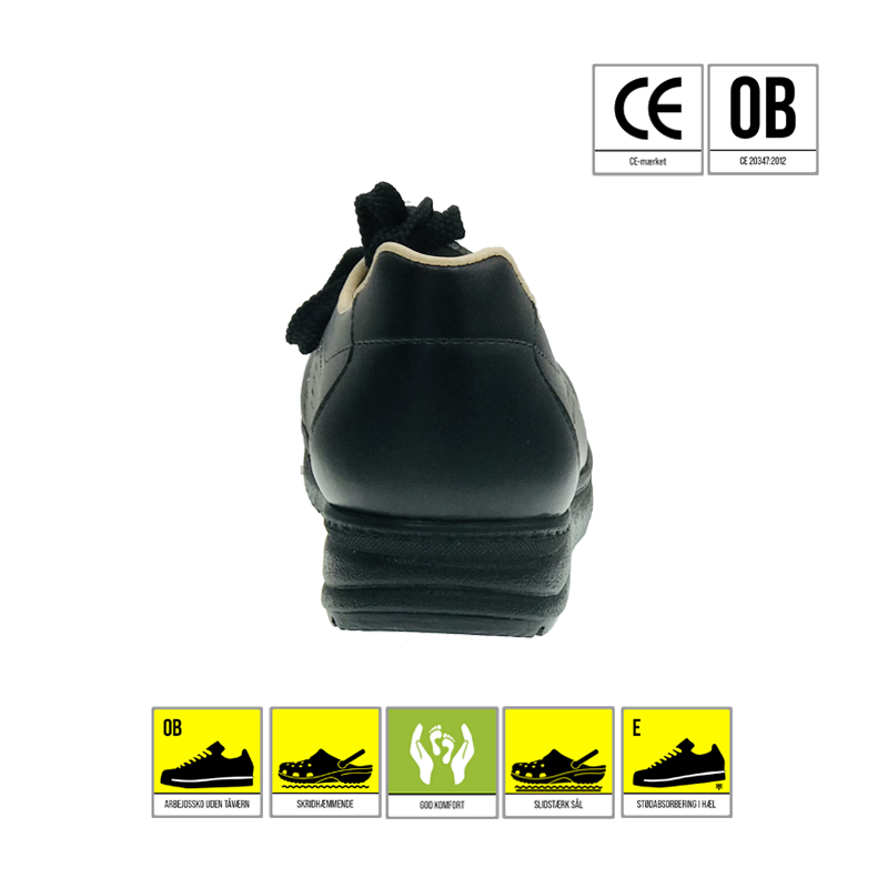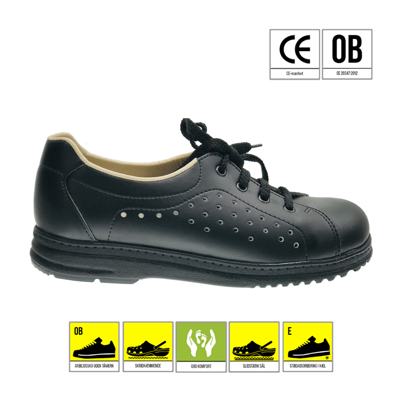 Komfortabel arbejdssko med skridhæmmende ydersål til arbejde på skiftende overflader.