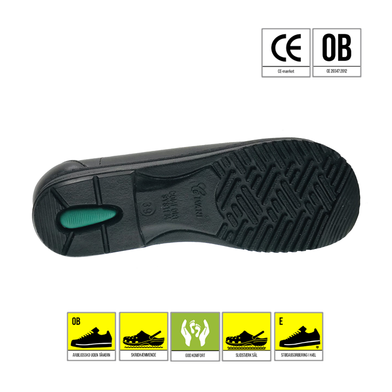 – Stødabsorberende og skridhæmmende PU ydersål.