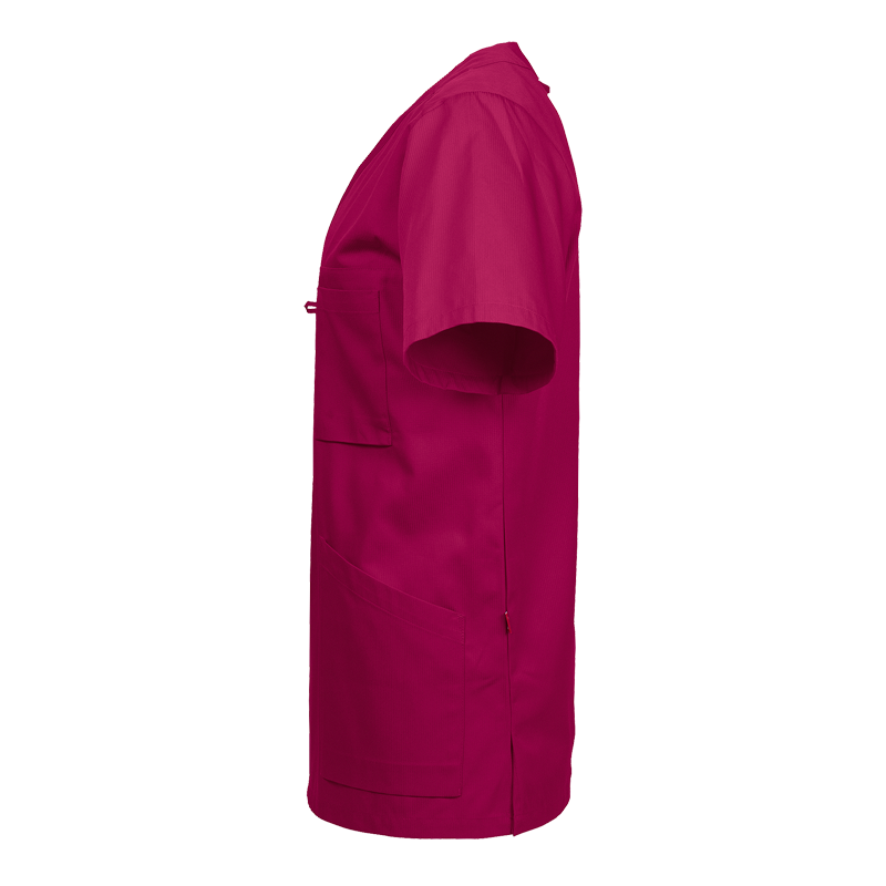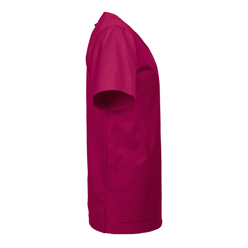 Flot og behagelig unisex busseronne med v-udskæring, åbne lommer og nøgle- og kortholder.